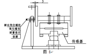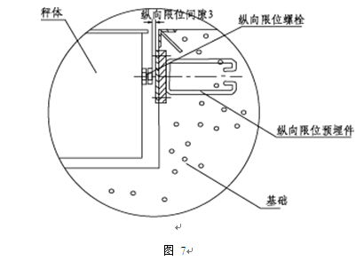 在秤臺的端蓋位置,按圖7的限位示意,調整限位螺栓頭部與預埋件側面間隙保持在3mm之內,然后鎖緊螺母。