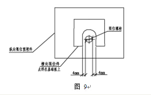 模式2:打開秤臺端蓋,按圖11的限位示意,將U型橫向限位件焊接在預埋件上,并使限位螺栓頭部與U型件側面間隙保持在4mm之內,然后鎖緊螺母。